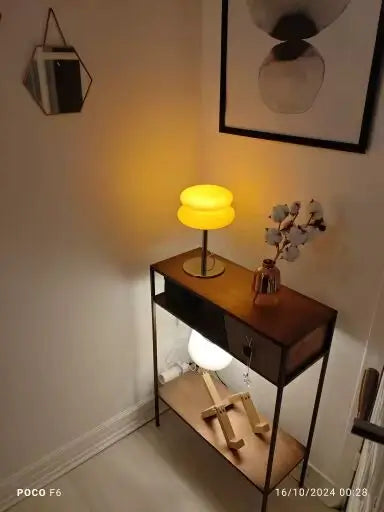 La couleur est mignonne. Je pensais que c'était du verre, mais c'est du plastique. J'aurais dû lire l'annonce plus attentivement ! Sinon, très belle lampe